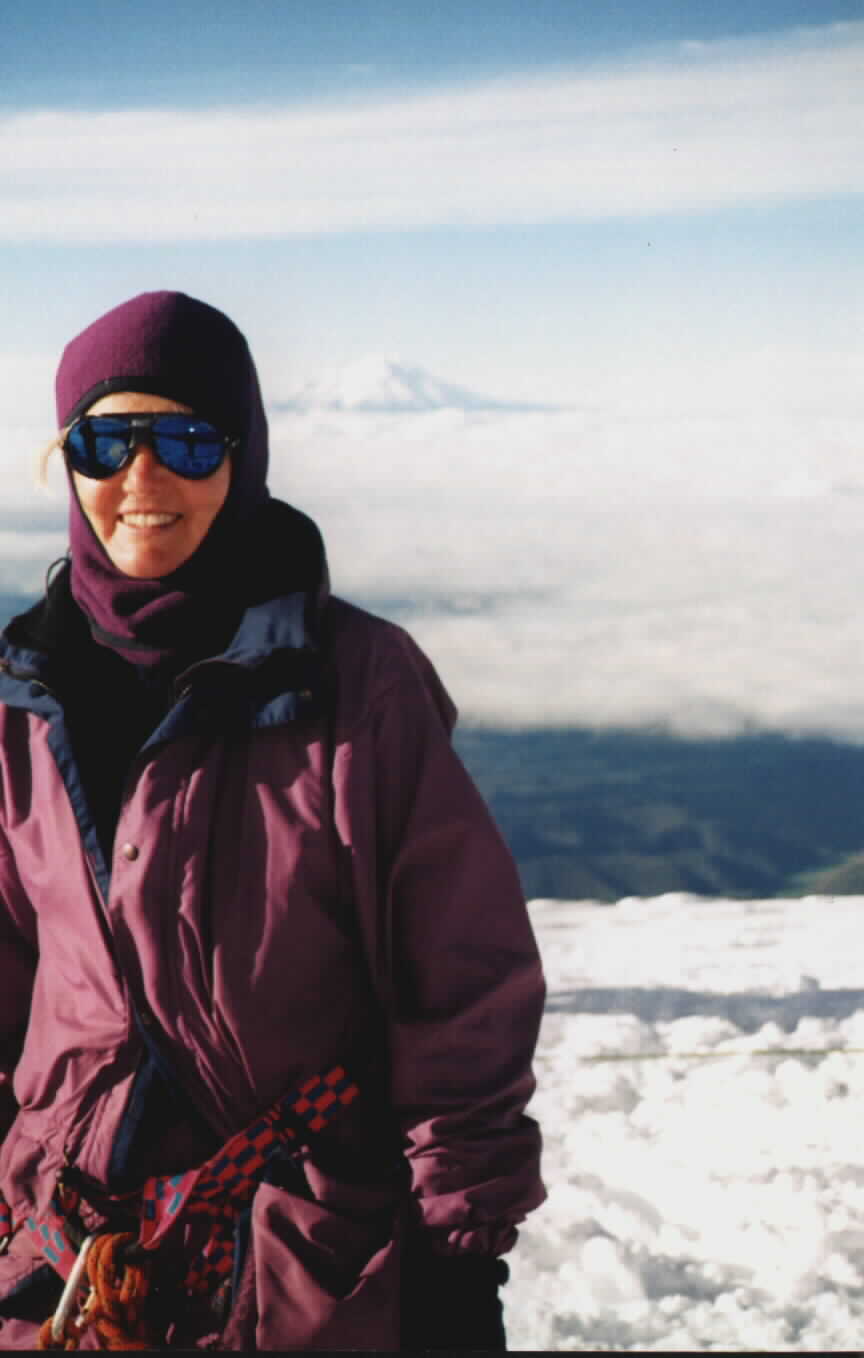 Judy at the summit of Cotopaxi (5,897m) on 9. January 1998