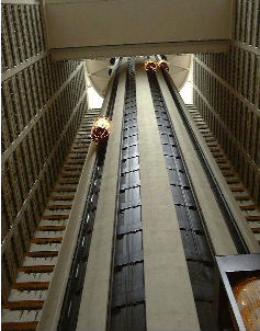 The amazing internal atrium and inside-out lifts at the Marriott Hotel