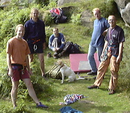 Bouldering crew (Paul, Toby, Mark, Ant and Stew, and mascot Gem)