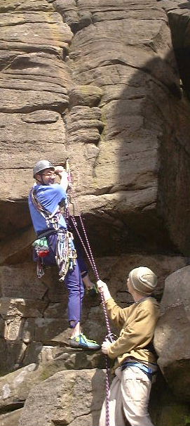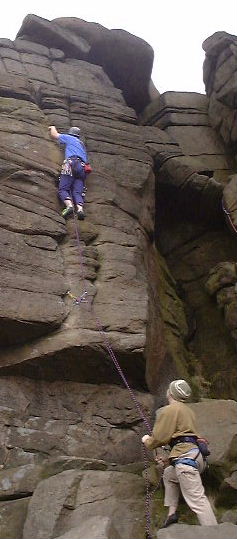 | Tony and Adrian (belaying) at the start of Amazon Crack (S 4a **) |