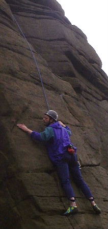 Tony making steady progress on Amazon Crack. Note the delicate footwork (by his belayer, I mean) |