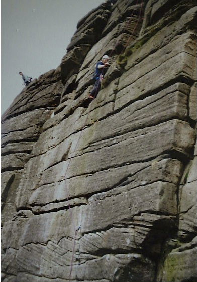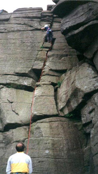 Steve and Lewis on Flying Buttress (VDiff) Stanage Edge, May 1999 |
