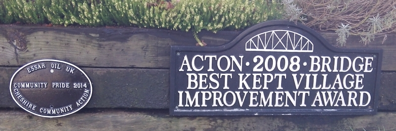 Great news for our Village - Acton Bridge has won the Cheshire Community Action 2014 Community Pride Award for our size category. We've been entering what was formerly known as the "Best Kept Village" competition for many years, but this is the first time we've achieved an outright win. Congratulations to Parish Councillor Hazel Bayley for coordinating our submissions, and thanks to Gordon for fixing up the new plaque on the flower bed by the Station.