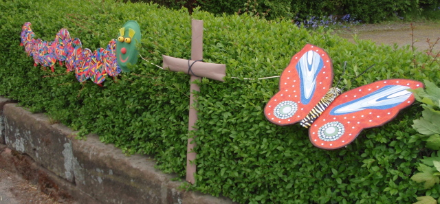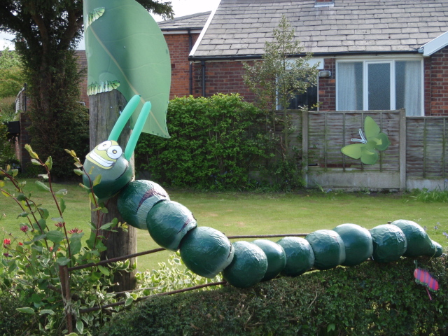 On Saturday 9. May 2009 there was another Caterpillar (and Butterfly) Trail and Competition, with maps of the exhibits in the Parish Rooms from 1pm to 4pm, where you could cast your votes for the winners. We hope this will become an annual event, perhaps later in the year to coincide with the pear blossom for which Acton Bridge is famous.