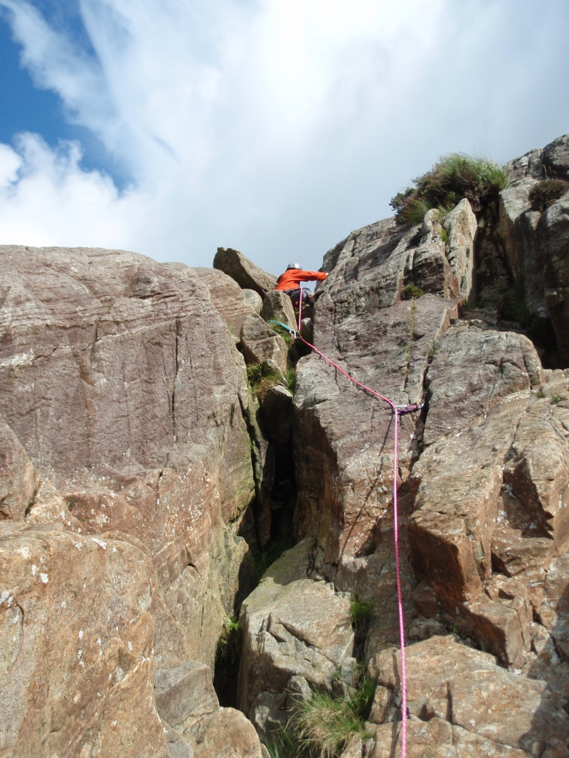 Other Steve leading past the awkward section of the Gully