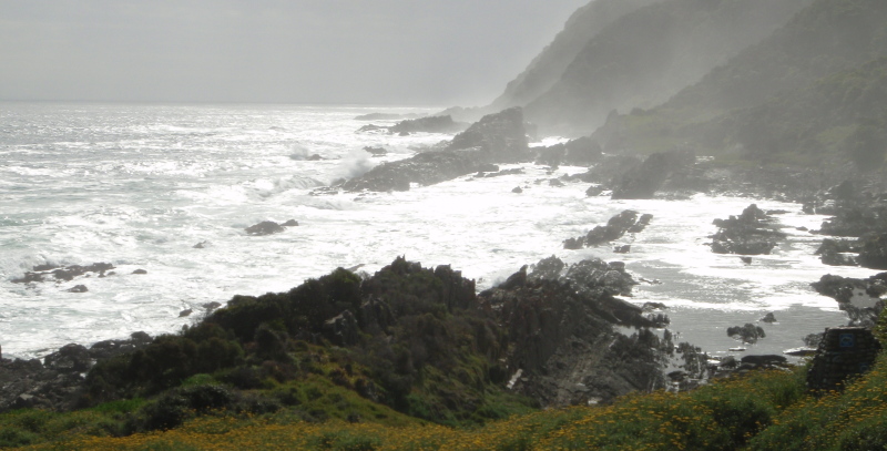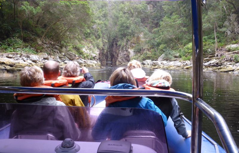 Storms River Mouth and the RIB boat leaving the harbour [SH]