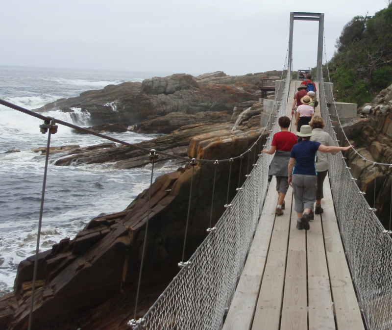 Crossing a suspension bridge at Storms River Mouth, Tsitsikamma National Park