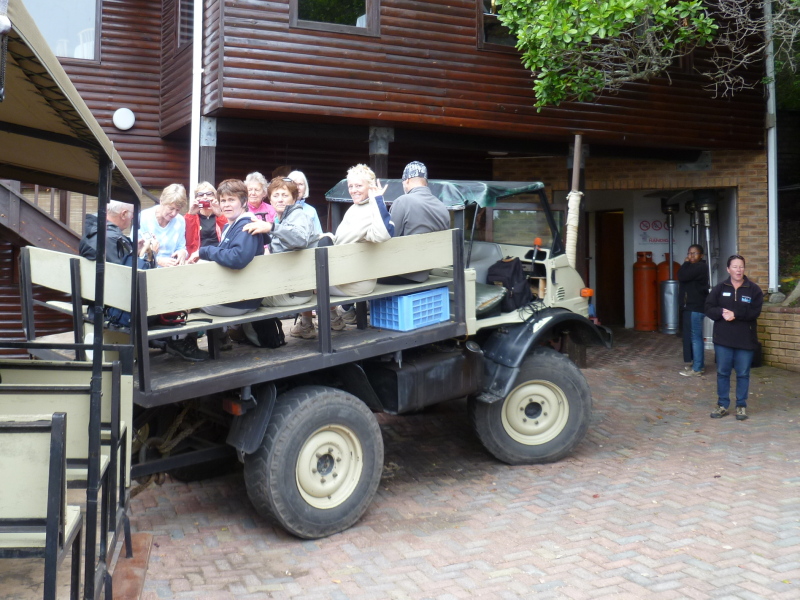 The Unimog tractor and trailers taking us up to Knysna Heads [SH]