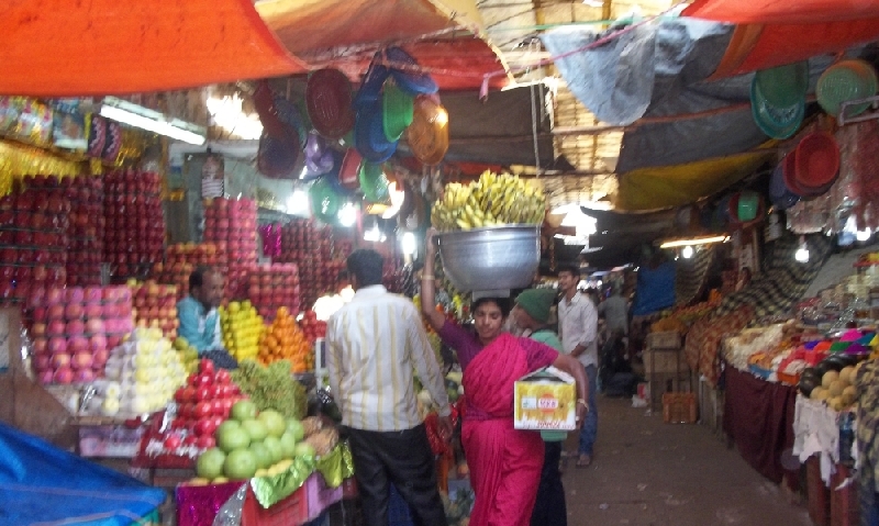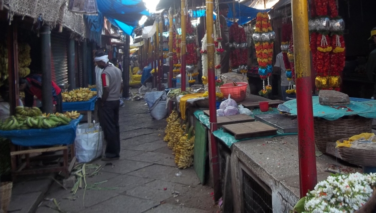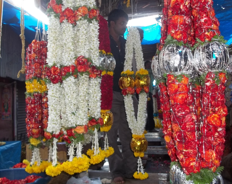 Spices, of course, huge piles of flowers, wonderfully coloured dyes for religious ceremonies, and every possible fruit...