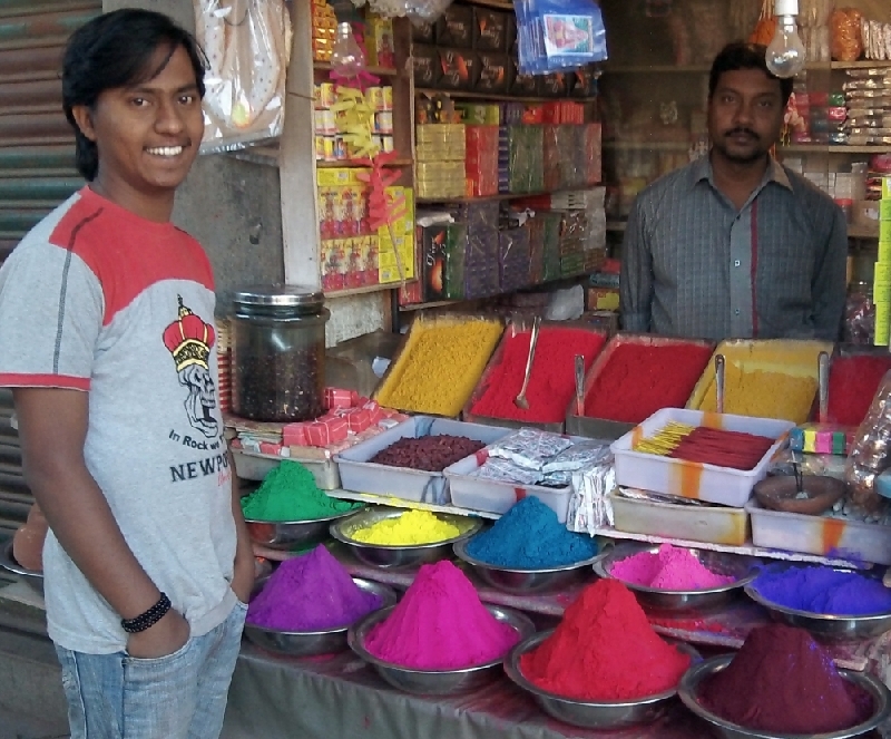 Mysore Market - brilliantly-coloured poster paint used in religious festivals