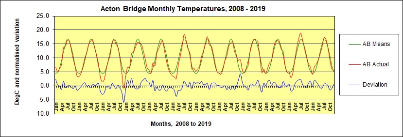 Average Temperature and Extremely Wet, an 11-year record for Acton Bridge |