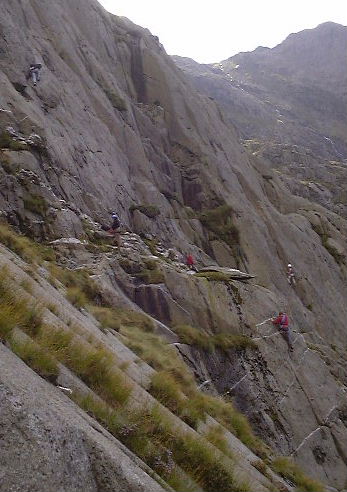 A group of seven Youarseys (readers of the uk.rec.climbing Internet newsgroup) met for a fine Sunday's rock climbing around the Idwal Slabs, Cneifion Arête, and Gribin Facet in the Ogwen Valley, North Wales