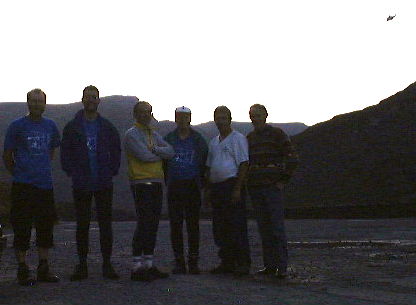 Six of the "Youarseys" (Mark had already left): Steve, Tony, Marek, John, Ant W, Roger. Note the smart new u.r.c T-shirts sported by some (and "kept clean" by others). The helicopter wasn't for us