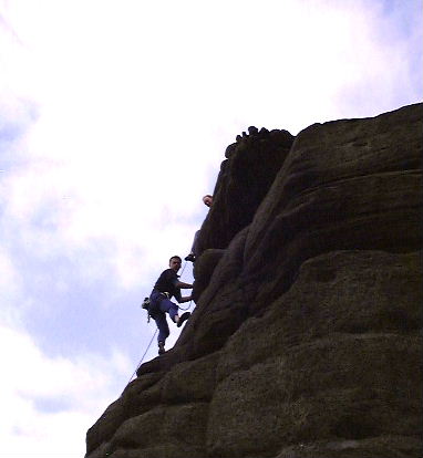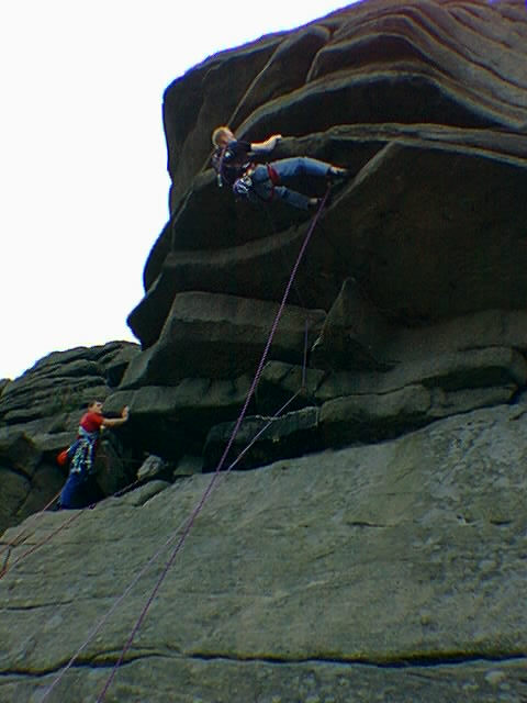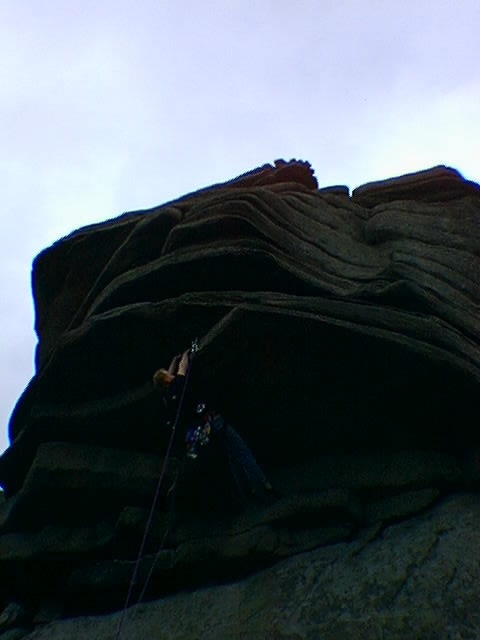 During Saturday afternoon, Ant led Flying Buttress Direct (HVS 5b) to great acclaim from the crowd and dutifully recorded by the Paparazzi.