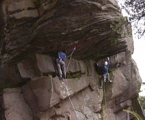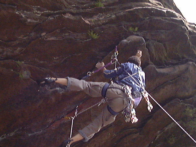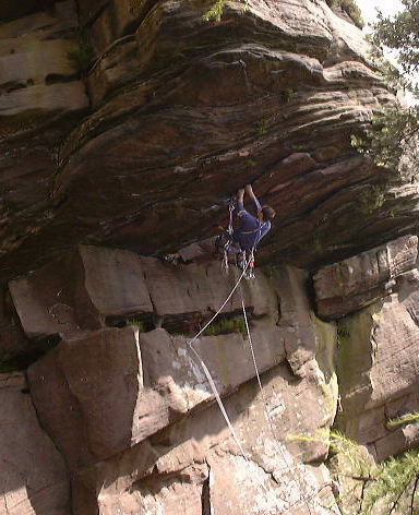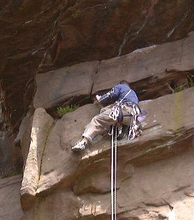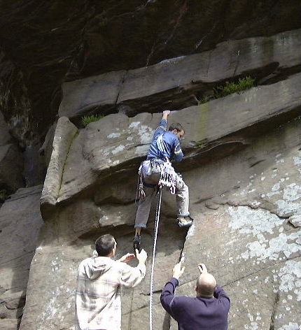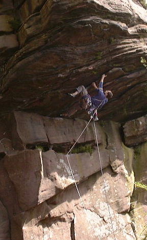 The Roaches and Crookrise This is Mark's attempt at Wombat, E2 5b, at The Roaches, 17/7/1999.